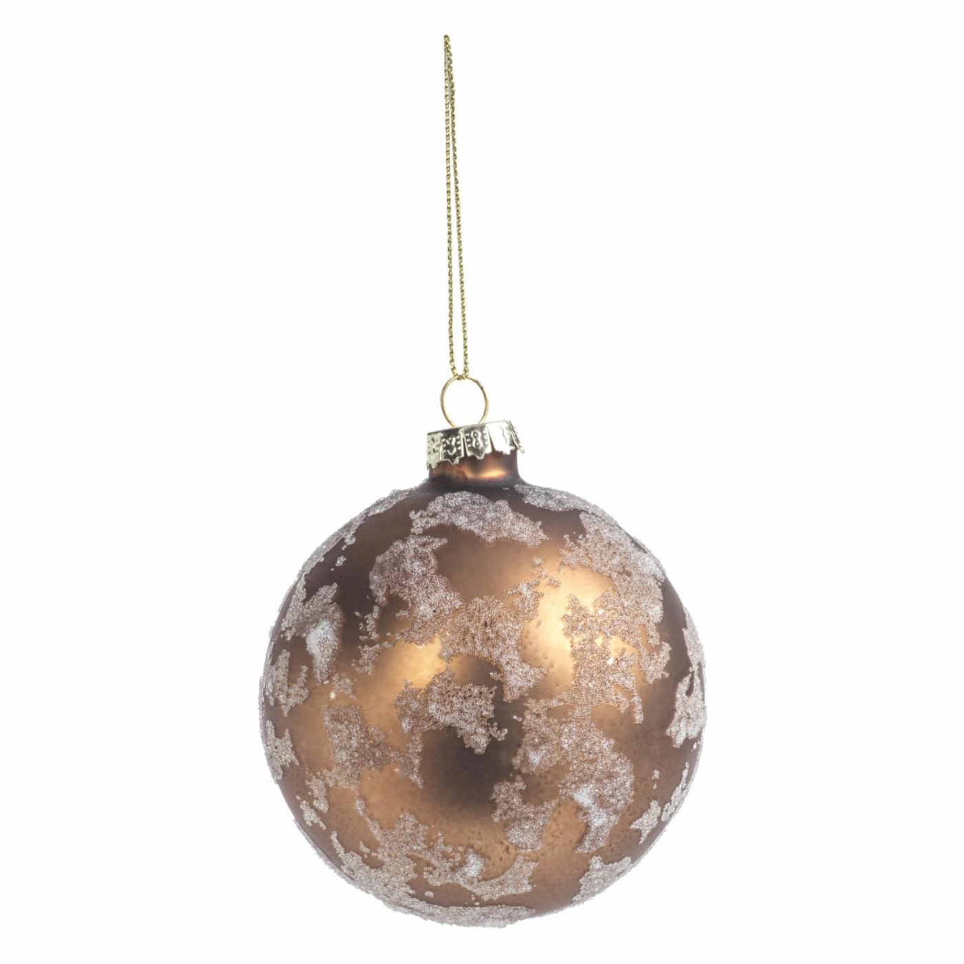 At once antique, yet modern, the Abstract Beaded Hanging Copper Ball Ornament – Set of 6 is an appreciable addition to your minimalists Yuletide dΓ©cor. This set provides you with six matching ornaments in your choice of available size. Each piece is made from glass with a copper finish and a silver metal cap. Abstract shapes are rendered on the surface in tiny beads for a frosted look.