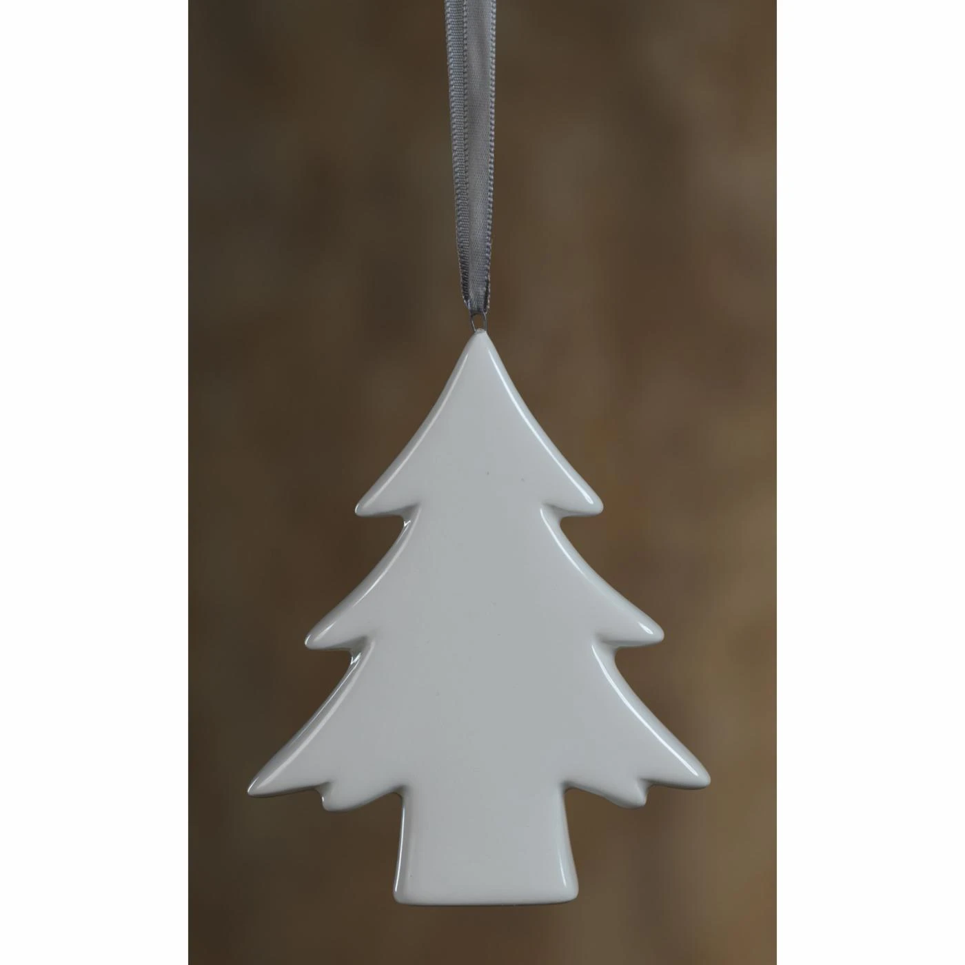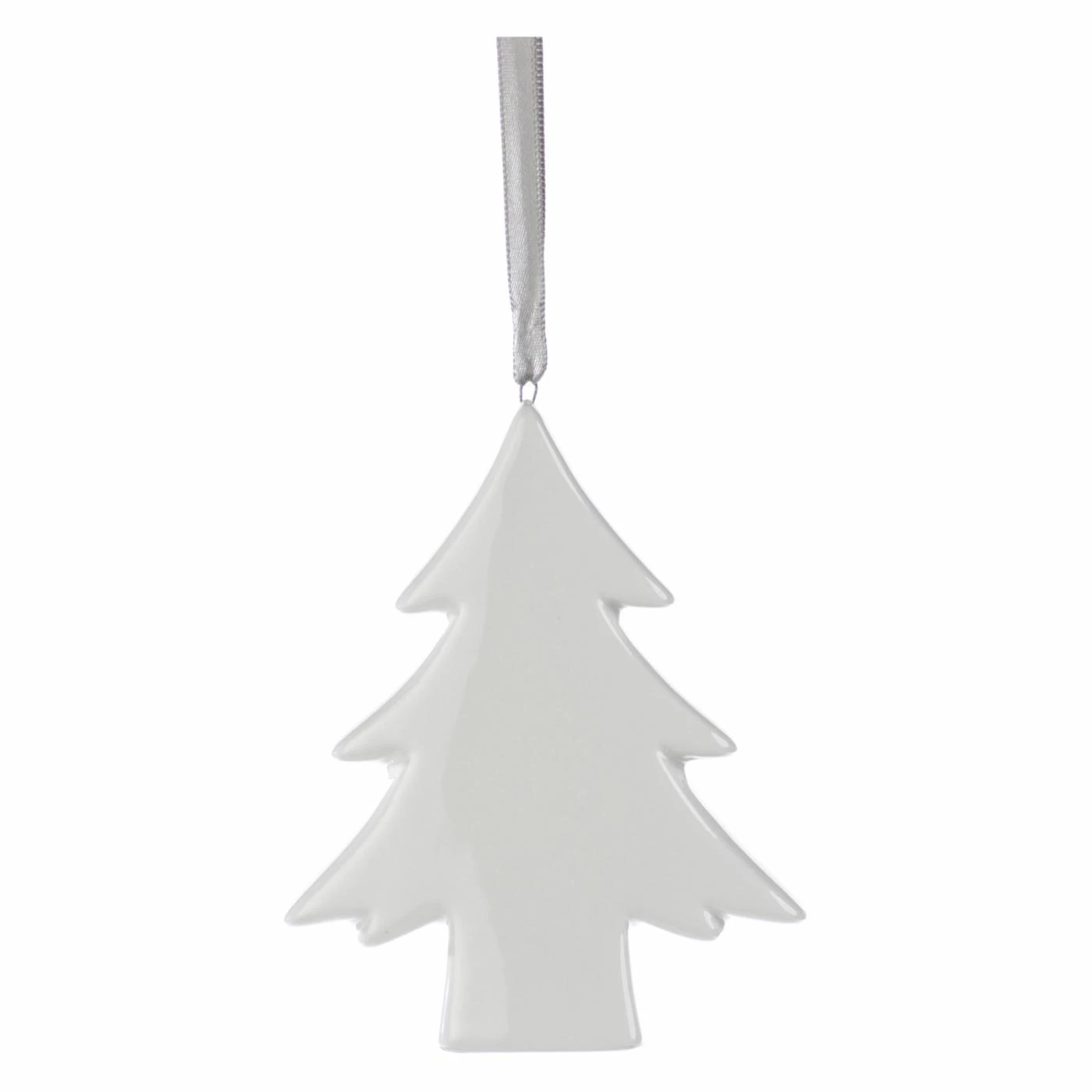 - Flat, ceramic evergreen tree ornament