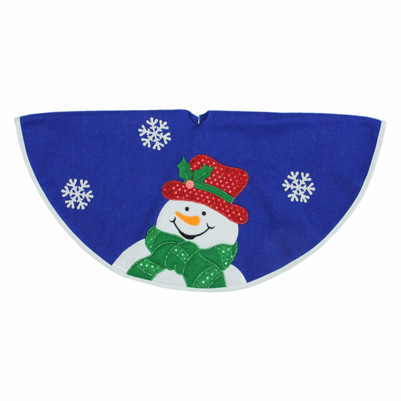 Crafted from polyester felt fabric, the Northlight 20 in. Embroidered and Embellished Snowman Mini Christmas Tree Skirt showcases a color-rich look. This Christmas tree skirt is outfitted with two hook and loop closures at the back, making it easy to slip around your tree’s stand and secure it in place.