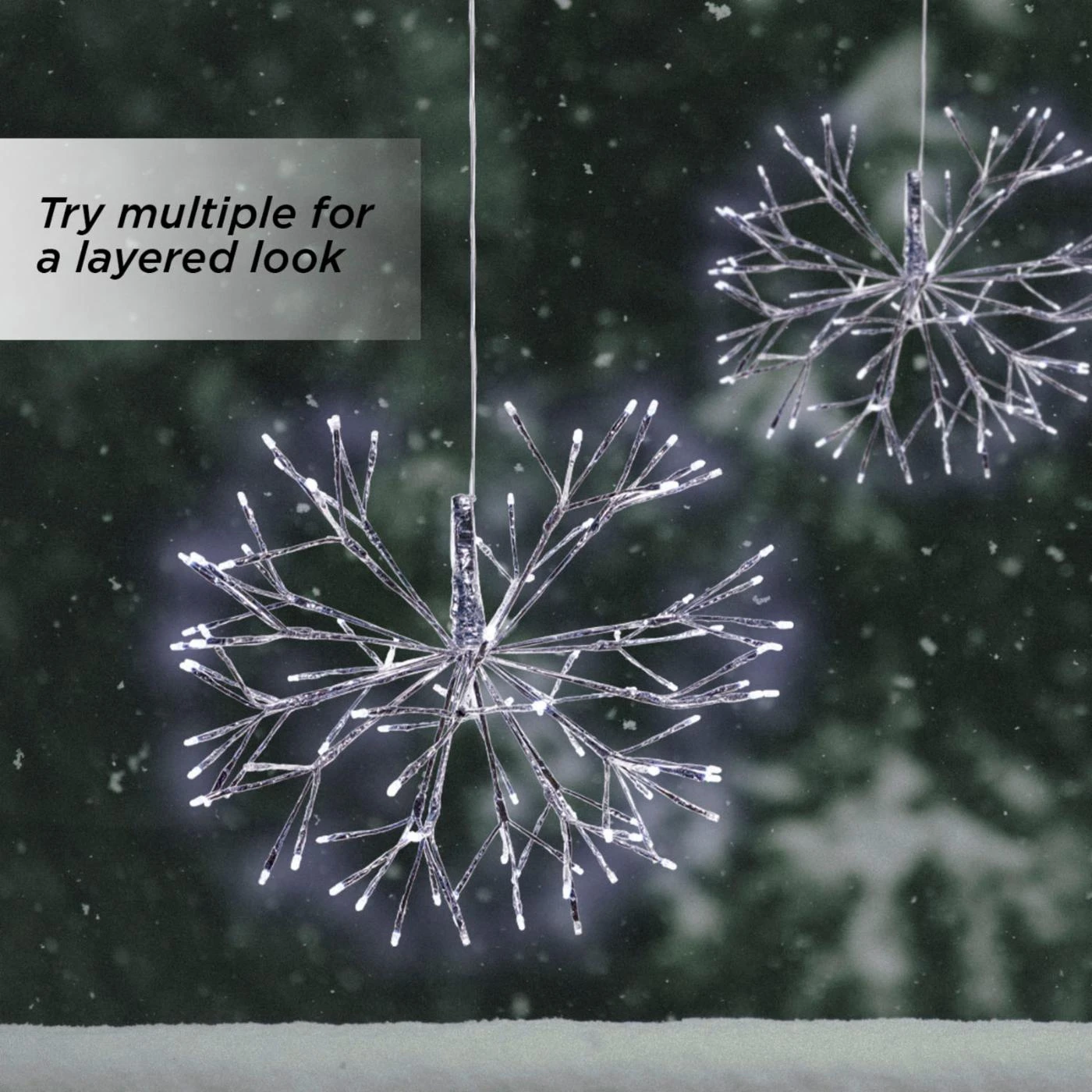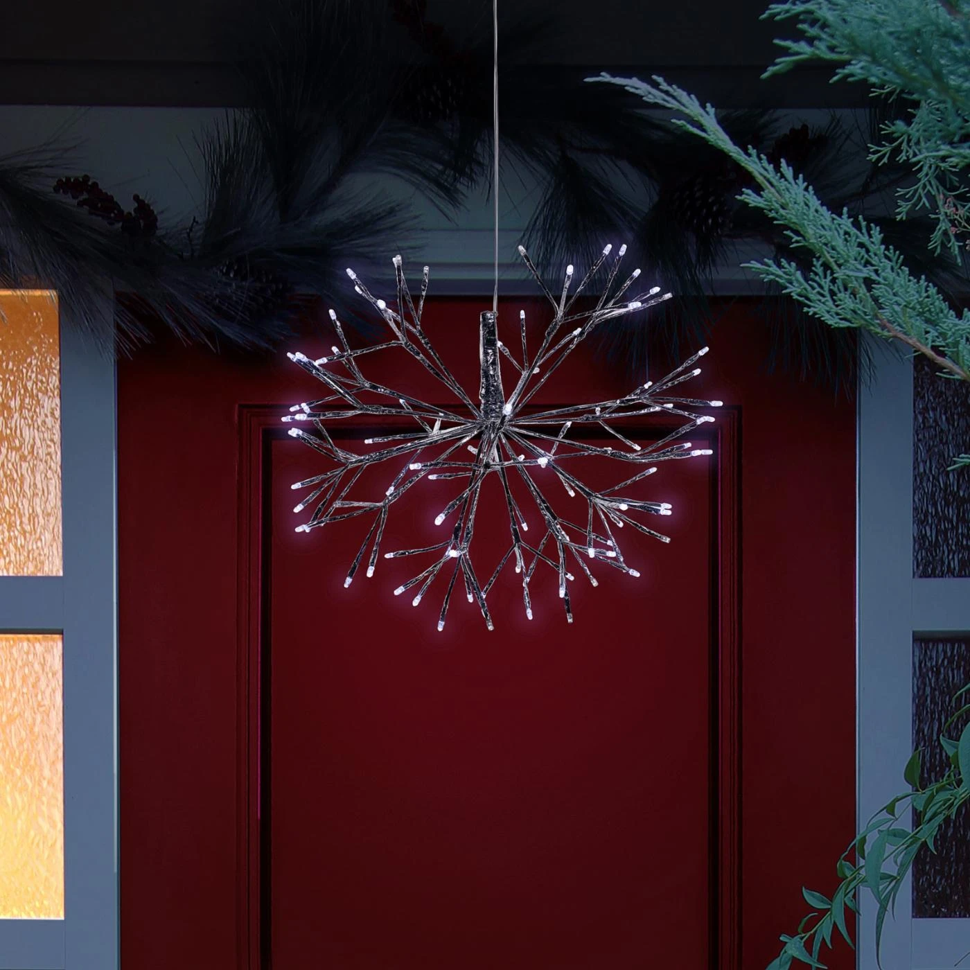 The Alpine Christmas LED Hanging Snowflake Ornament lets you add a bright hint of light to your holiday dรฉcor. LED lights are arranged in a three-dimensional snowflake pattern for a festive effect.