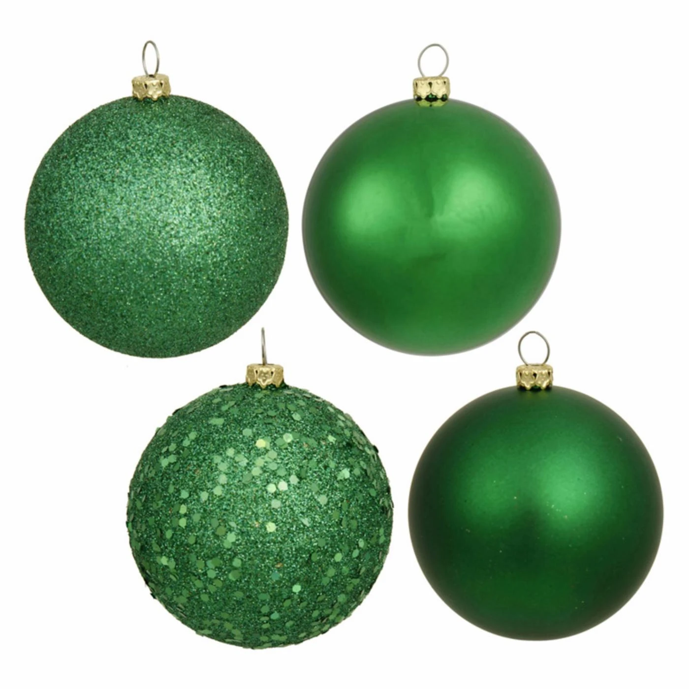 Classic green works with both modern and traditional holiday decor. The Vickerman 2.75 in. Green 4 Finish Ornament Assorted – Set of 20 helps you decorate by providing 20 hanging ball ornaments that are just the right size and come in four finishes for a variety of matte and glittery textures and varying shades of holiday green. They’re made of lightweight, shatterproof plastic and add color and sparkle to your Christmas tree.