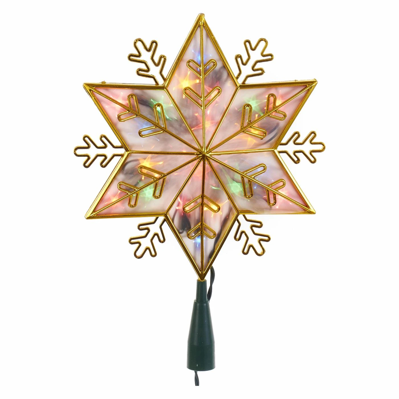 Finish off your Christmas tree in glamorous style with the Kurt Adler UL 20-Light Snowflake Star Tree Topper. This decorative star is lighted from within in an array of beautiful hues. This tree topper is designed for indoor use only and features a 30-inch lead wire that can easily trail down to your outlet or power strip.