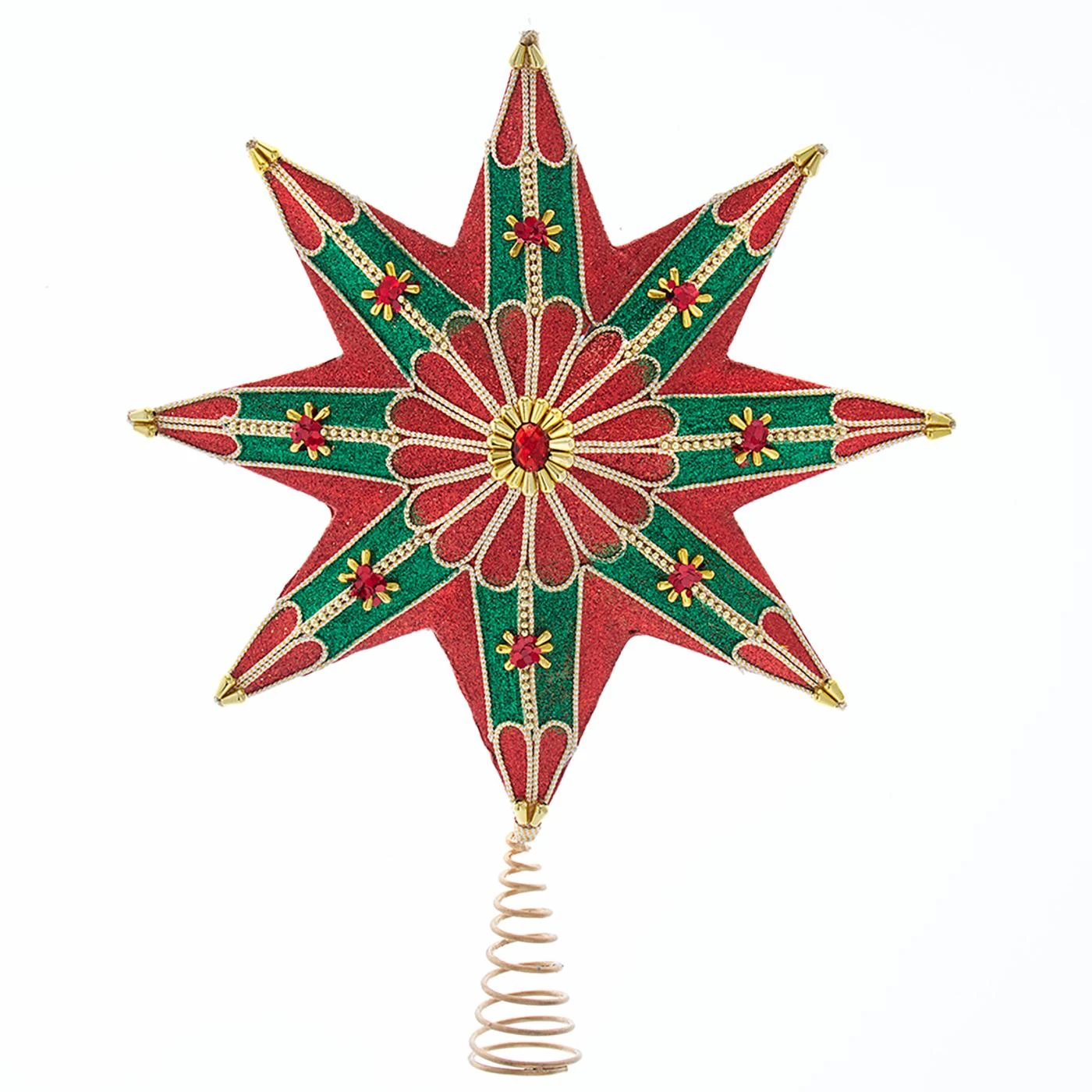 Best Sale ๐งจ Kurt S. Adler, Inc. ๐ Christmas Tree Toppers Kurt Adler 16-Inch 8-Point Red, Green, And Gold Traditional Star Tree Topper โจ