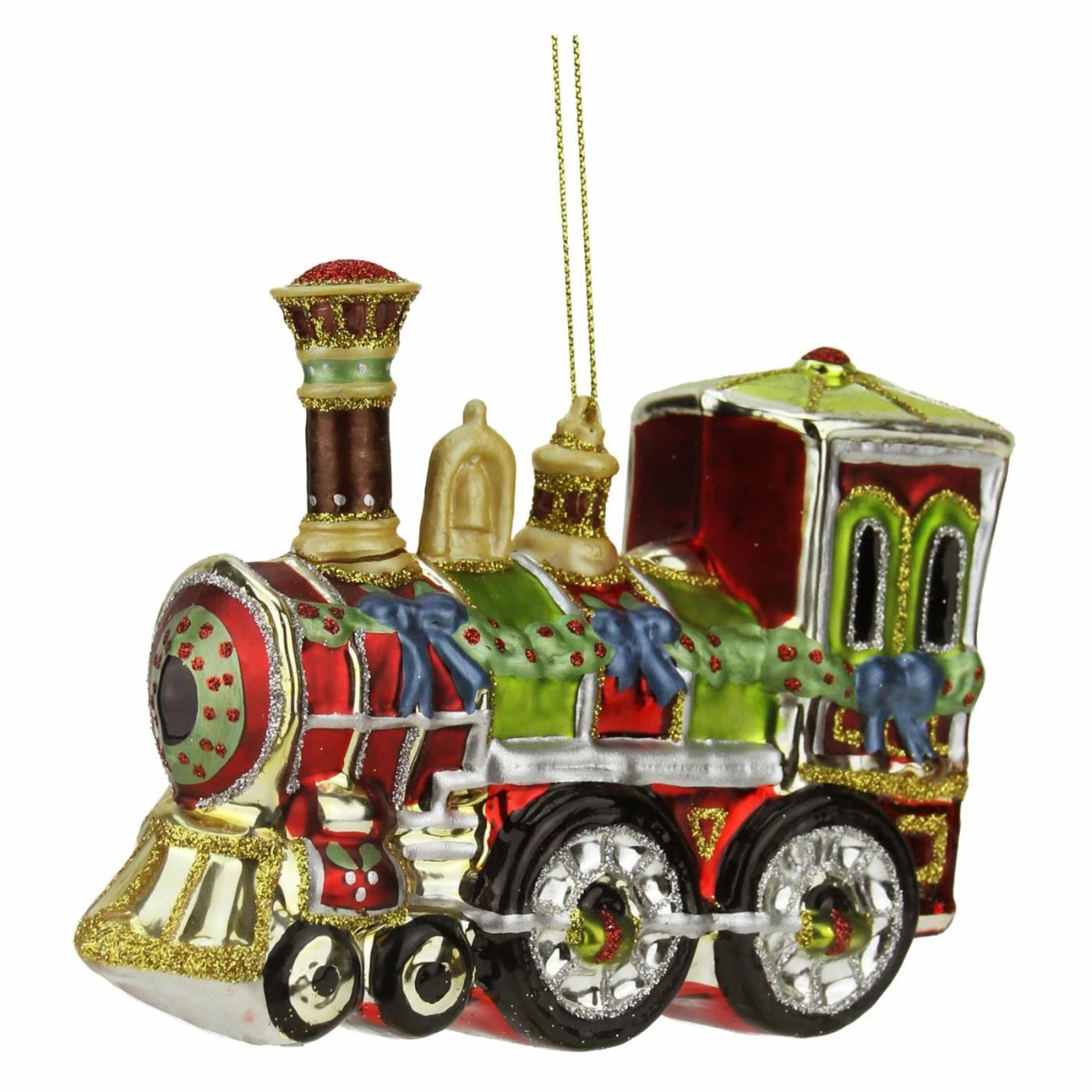 Add a nostalgic touch to your holiday decor with the Northlight Multicolor Glass Train Christmas Ornament. This retro-styled ornament depicts a colorful train with whimsical glittery details. The glass design ensures traditional quality. It comes ready to hang on a gold cord.