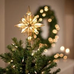 Promo โ Christmas Tree Toppers Kurt S. Adler 10-Light 15-Point Gold Sputnik Capiz Treetop ๐