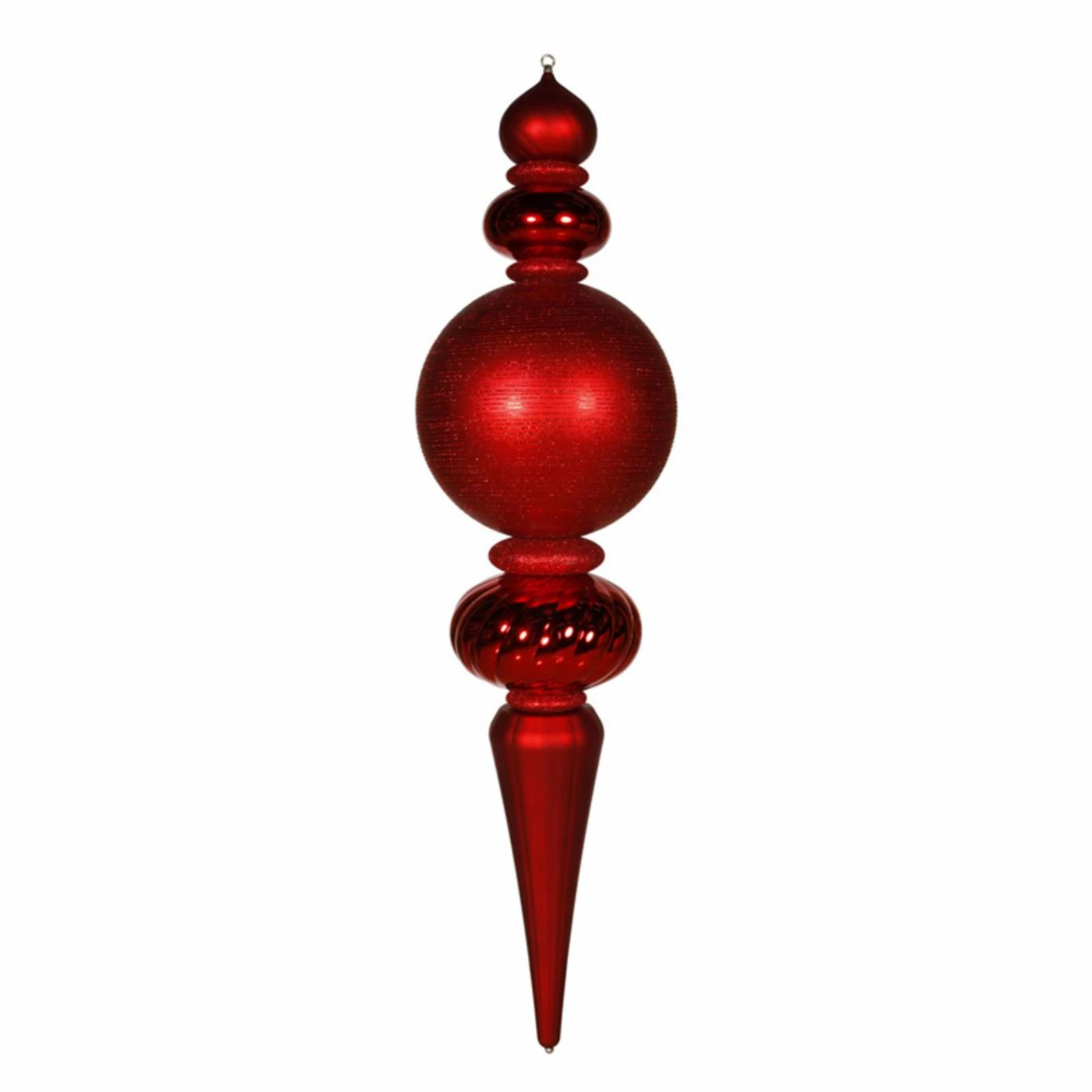 At just over five feet tall, the Vickerman 62 in. Red Finial Shiny Matte Glitter is sure to elevate your Christmas dΓ©cor. This large shatterproof plastic finial ornament comes in red with both glitter and shiny finishes. Hanging hardware ensures it’s a breeze to display.