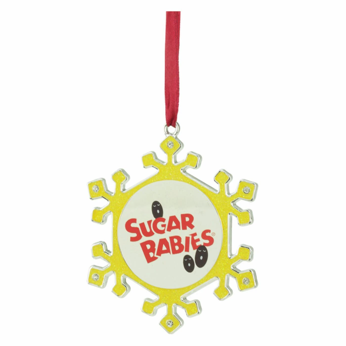 Celebrate a sweet-tooth favorite with the Northlight Snowflake Sugar Babies Christmas Ornament with European Crystals. This glittery ornament exhibits a sparkling crystal at each point for light-gathering charm. Guests will smile in recognition at the familiar label. It comes ready to hang on a red ribbon.