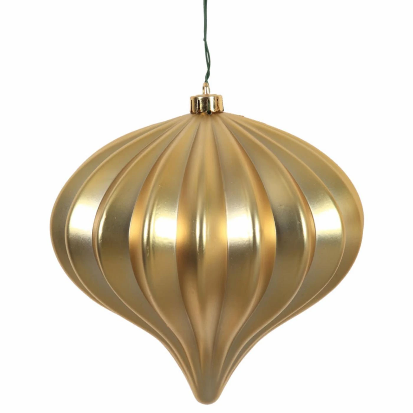 A sleek matte finish adds modern appeal to the classic design of the Vickerman 5.7 in. Matte Onion Ornament – Set of 3. This elegant ornament set features shatter-resistant plastic construction and a choice of available colors to create a festive look.
